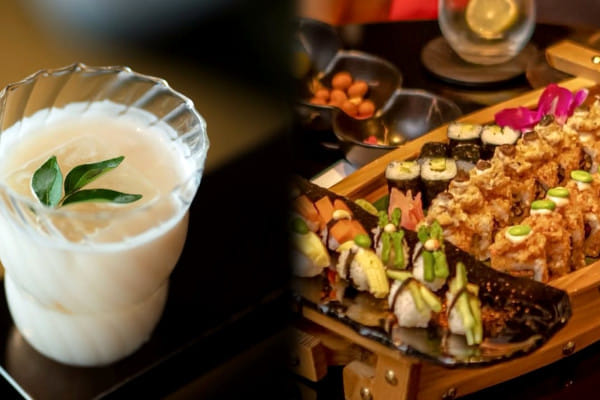 Set within the Four Seasons Hotel, Copitas is known for its elegant simplicity and precision. The Curry Leaf cocktail, infused with roasted peanuts, almonds, orange liqueur, and aged Puerto Rican rum, is an aromatic homage to spice and smoothness. Paired with the Spicy Tempura Maki, the roll’s gentle heat and crunch enhance the cocktail’s layered flavour. The maki’s subtle heat enhances the cocktail’s complexity, creating a pairing that might make you go for more.