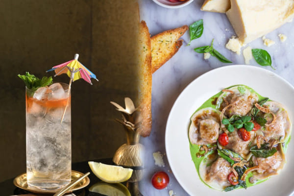 At Sly Granny in Khan Market, old-world charm meets playful sophistication. Amid vintage décor and an inviting, lived-in warmth, the pairing of the Rochelle cocktail with the sundried tomato and spinach ravioli creates a gentle dialogue of contrasts. The lightness of the drink lifts the creamy, earthy notes of the pasta, while the sun-dried tomato adds a gentle tang that ties everything together. It’s a simple but well-matched combination that is as graceful as it is comforting.